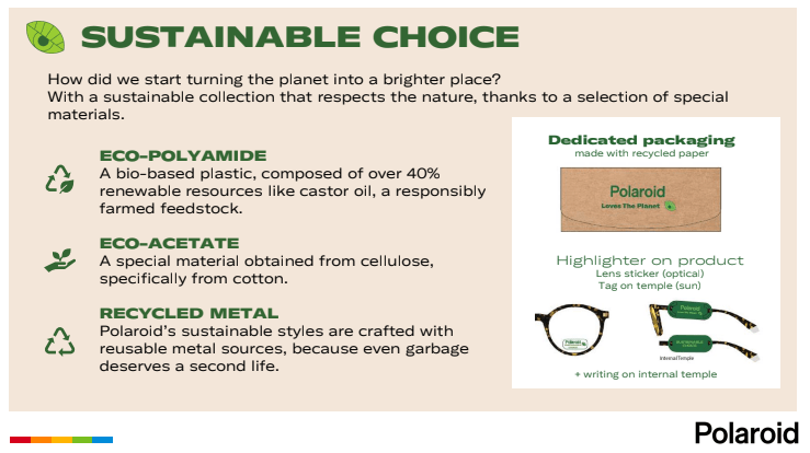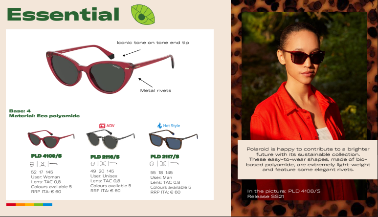 Our amazing new Polaroid range has been dispatched to all stores with a few more styles still to come. The core range includes the new fully sustainable styles – 4 men’s/unisex (2109, 2110, 2116, 2117) and 2 women’s (4107, 4108) for a total of 16 skus across all the colours. Plus we have an extended range of new fashion styles, top ups of all your best sellers AND a stellar new range for Outlet stores too! Read on and view the video to discover a little more about the sustainable collection!
